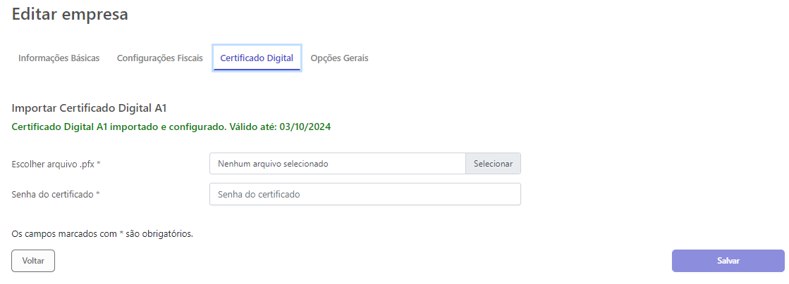 O Sensio ERP conta com suporte para certificado digital modelo A1.